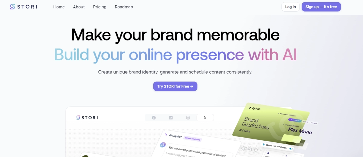 PaidStori AI simplifies creating and managing your brand's online presence. It generates a unique brand identity and offers tools to schedule and publish content across various platforms. Whether for personal or business brands, Stori AI helps maintain a consistent voice and branding as your brand expands.