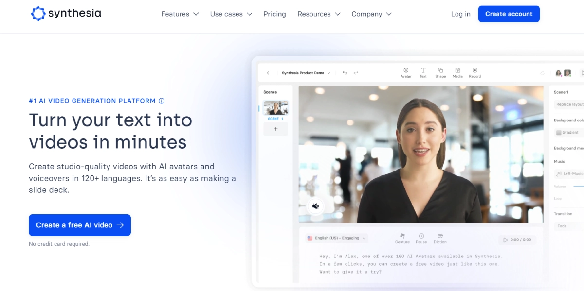 PaidSynthesia is an AI-powered video creation platform that transforms text into high-quality videos using avatars, voiceovers, and subtitles in over 120 languages. It offers real-time collaboration, 200+ video templates, and integrations for efficient video production. With pricing plans catering to individuals, small teams, and enterprises, Synthesia aims to streamline video creation while maintaining professional standards. Users can benefit from significant time and cost savings compared to traditional methods. Custom avatars, translations, voice cloning, and other add-ons are available for enhanced customization. A free trial is offered, and paid plans can be adjusted or canceled at any time.