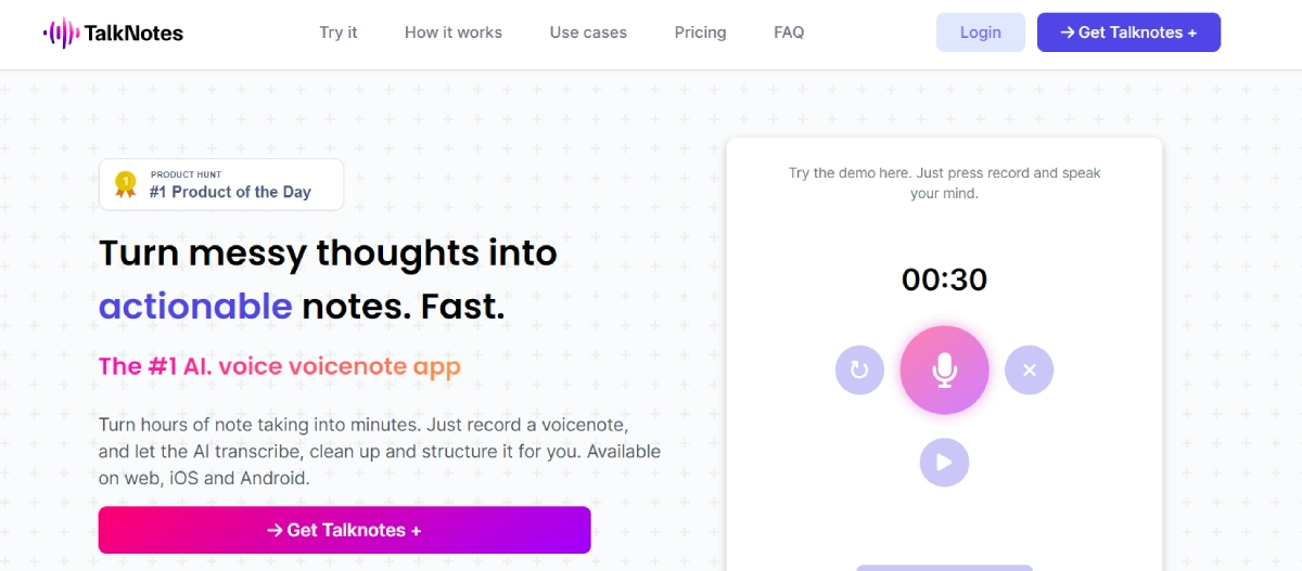 PaidTalknotes AI is a voice notes application that records discussions and transcribes them instantly, ensuring no important detail is missed. It benefits students, educators, and professionals by converting spoken content into clear, organized notes for future reference. This tool enhances meeting productivity and educational effectiveness by allowing users to focus on discussions without the need to take notes. Talknotes AI prioritizes privacy by deleting audio files after transcription and does not use personal notes for AI training, keeping user data confidential. It offers support through live chat and email and is available on iOS and Android devices. With multilingual support and the ability to upload personal audio files, Talknotes AI is a versatile tool for improving productivity and learning experiences by converting voice recordings into editable text efficiently.