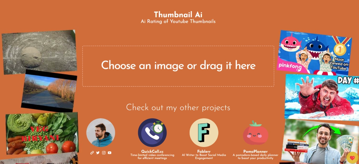 FreeThumbnail AI is an AI tool that analyzes and rates Youtube video thumbnails to help creators improve clickthrough rates. By evaluating elements like text, contrast, faces, and color, Thumbnail AI provides data-driven suggestions to enhance the quality of thumbnails. Users can upload an image or enter a Youtube URL for assessment. This tool identifies flaws and offers recommendations to create more compelling thumbnails, making thumbnail creation easier and more effective. Thumbnail AI uses machine learning algorithms trained on successful thumbnails to assist users in crafting engaging thumbnails that drive more clicks. Ideal for Youtube creators, businesses, marketers, educators, and photographers, Thumbnail AI optimizes thumbnails efficiently, saving time and enhancing visibility on the platform.