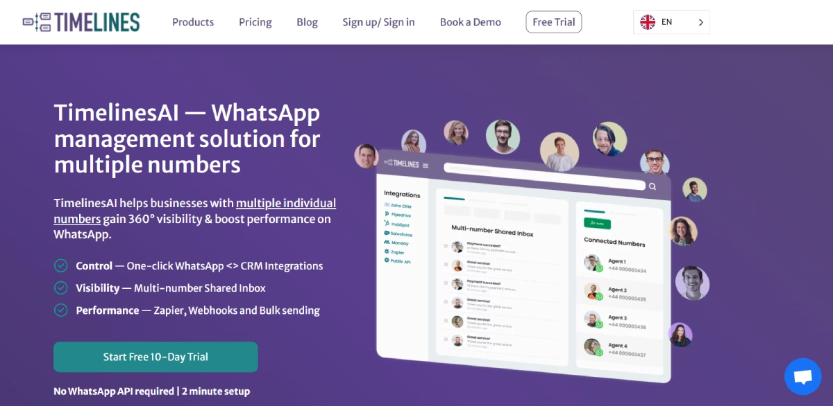 PaidTimelines AI allows you to manage multiple individual WhatsApp numbers for businesses efficiently. This solution enhances visibility and performance on the platform by simplifying team communication. Businesses can enjoy a free 10-day trial to explore Timelines AI's powerful features firsthand. After the trial, pricing plans are available to suit businesses of different sizes, ensuring a cost-effective solution for all.