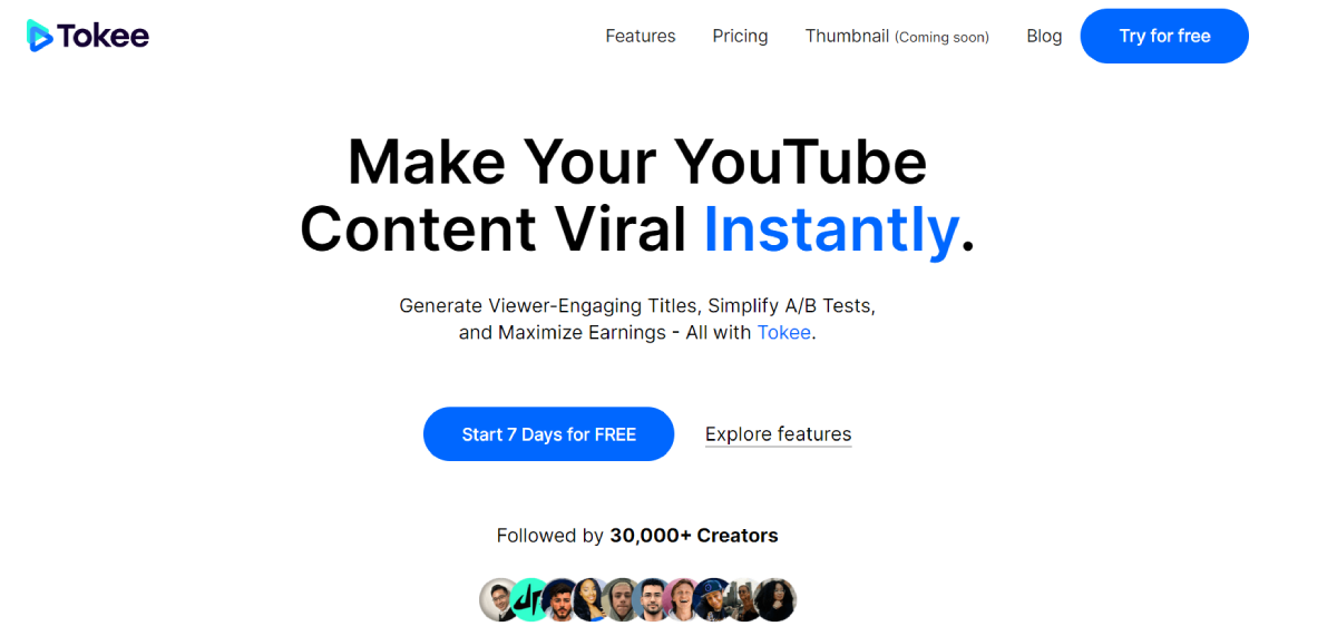 PaidTokee helps YouTube creators enhance video performance using AI technology. It optimizes video titles, simplifies A/B testing, and offers revenue-boosting insights to increase virality.