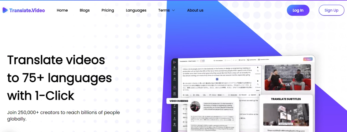 Translates videos into 75+ languages with a click