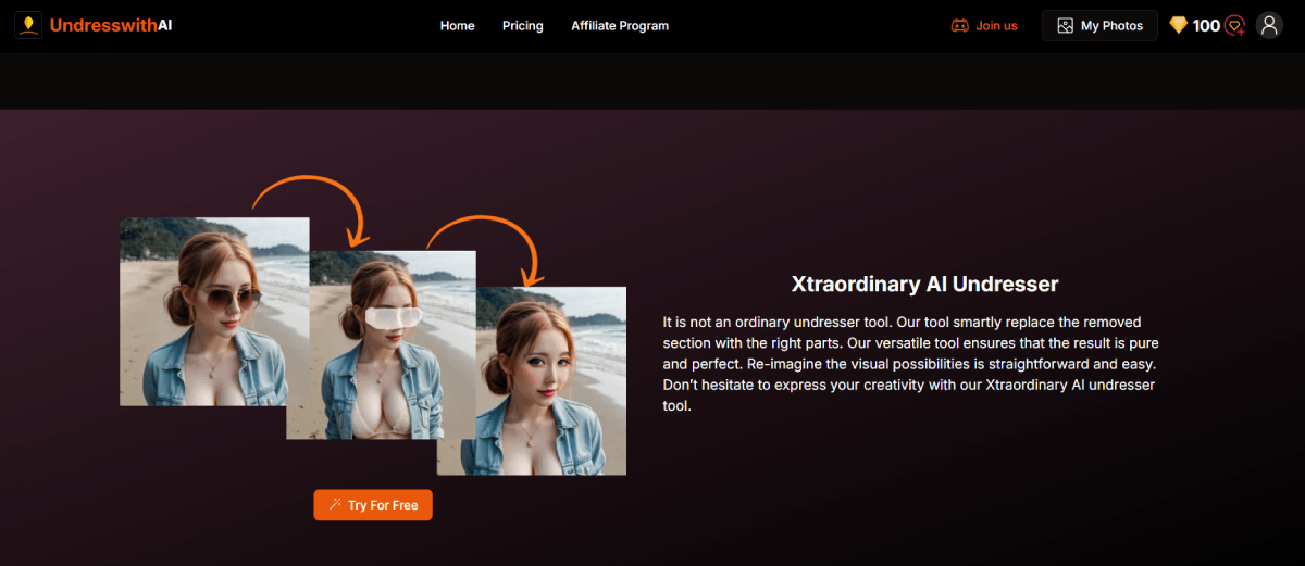 PaidUndresswith AI is an AI-powered image editing tool that enables users to effortlessly modify and customize images. With this tool, users can easily alter visual elements like clothing, styles, and textures to transform the appearance of images. Ideal for content creators, designers, and businesses seeking to efficiently reimagine visual content, Undresswith AI streamlines the editing process and enhances creativity. By utilizing this tool, users can quickly make visual adjustments without the need for complex editing skills, saving time and effort. Whether enhancing product images or creating captivating designs, Undresswith AI offers a user-friendly solution for achieving visually stunning results.