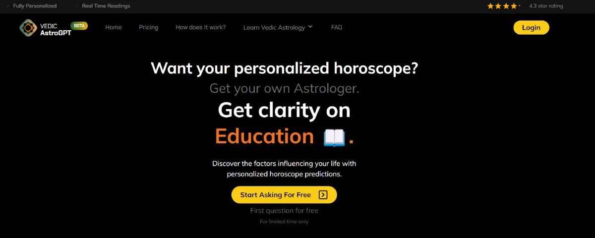 PaidVedic Astro GPT allows you to receive personalized real-time astrological readings. This user-friendly platform offers insights into astrology, providing guidance on various aspects of life such as career choices. With pricing starting at just $1, Vedic Astro GPT is an affordable option for those seeking astrological advice.
