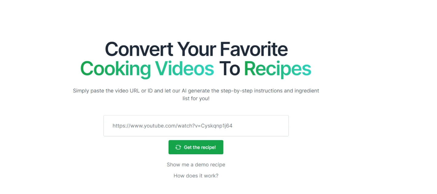 FreeVideo2Recipe effortlessly transforms cooking videos into step-by-step recipes, eliminating the need to pause, rewind, or take notes. Whether you're a seasoned chef or a kitchen beginner, this tool simplifies your culinary journey. By leveraging AI technology, Video2Recipe extracts all the essential details from videos, ensuring you have everything required to recreate the dish accurately. Say goodbye to confusion and guesswork in the kitchen—this tool provides reliable recipes for your favorite meals, making cooking a stress-free and enjoyable experience. With Video2Recipe as your culinary companion, you can embark on cooking adventures with confidence, knowing that precise instructions are just a click away.