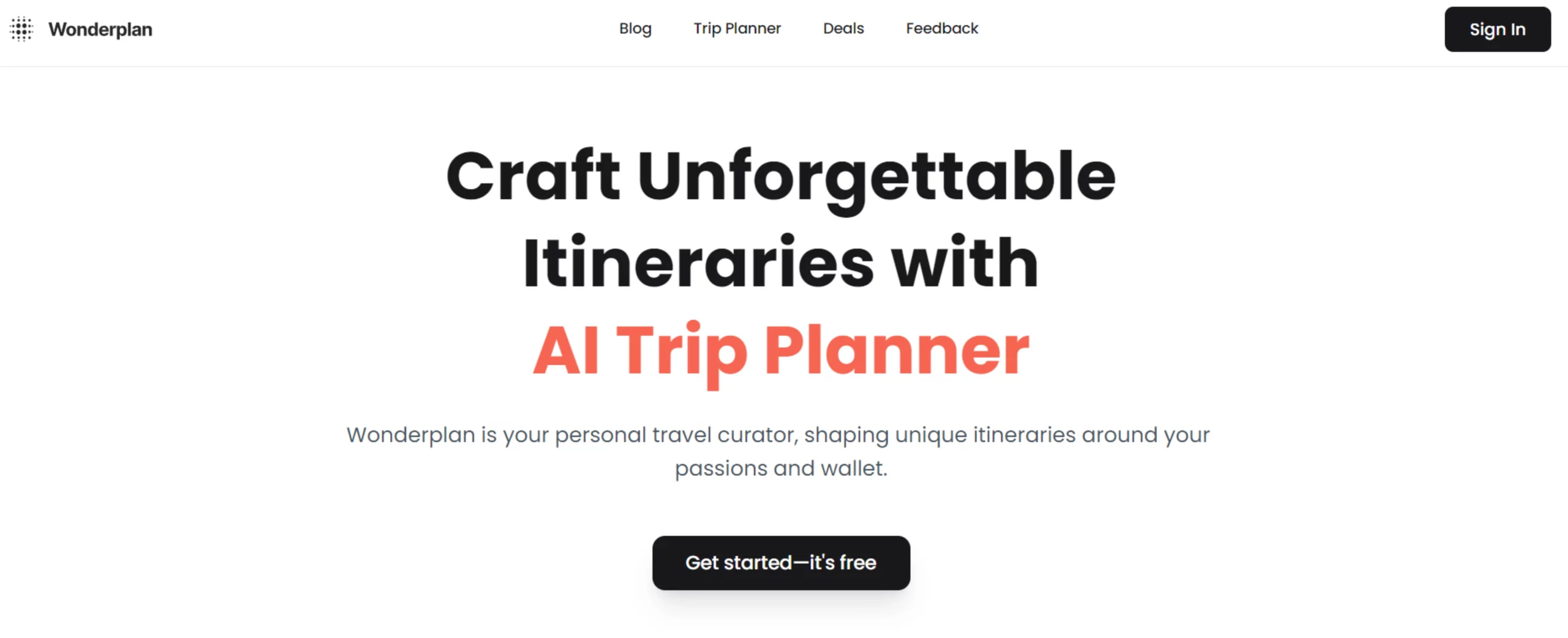 FreeWonderPlan AI is a modern trip planning tool that uses artificial intelligence to create personalized travel itineraries based on your interests and budget. This platform streamlines the travel planning process, offering a variety of features to make organizing your trip hassle-free. WonderPlan includes a helpful FAQ section to address common questions about its features, offline capabilities, itinerary adjustments, and support options. Additionally, users can access a blog with insider tips for planning trips to different destinations. For real-time assistance, WonderPlan offers AI-powered chatbots to provide instant support. With WonderPlan AI, you can say goodbye to the stress of planning your next adventure and enjoy a smoother, more tailored travel experience.