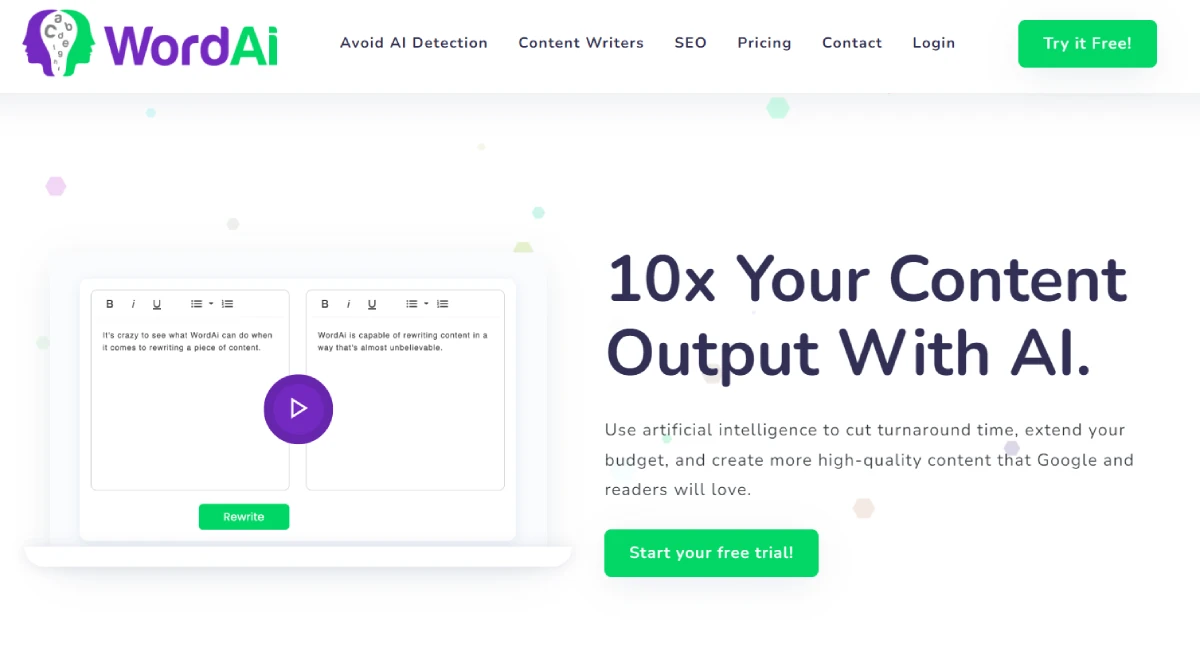 PaidWordAI is an AI-powered content rewriting tool designed to help you create high-quality, unique content efficiently. By using advanced machine learning models, WordAI can rewrite text quickly while maintaining its original meaning. It goes beyond simple word replacements by restructuring sentences and paragraphs to enhance engagement and SEO value. With WordAI, you can generate up to 1,000 rewritten versions of a single article, allowing for diverse content creation. This tool works at unmatched speed, enabling you to rewrite entire blog posts or articles in seconds. Additionally, WordAI offers adjustable originality control, allowing you to customize the level of transformation based on your content goals. It also includes AI cloaking features to ensure that the rewritten content passes plagiarism checks and avoids detection.