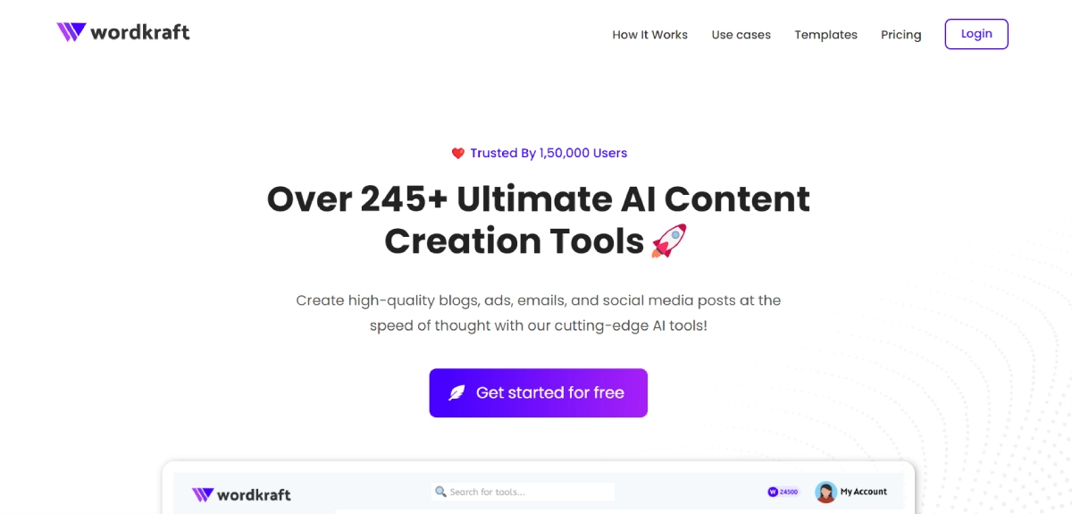 PaidWordcraft AI is a powerful content creation platform driven by modern AI technology. Featuring a comprehensive suite of over 245 AI tools, it empowers users to easily generate top-notch content such as blogs, ads, emails, and social media posts with remarkable speed and efficiency. Trusted by a community of 150,000 users, Wordcraft AI revolutionizes the content creation landscape by streamlining the process and ensuring high-quality results. Whether you're a seasoned professional or new to content creation, this platform solves the challenges of producing engaging and impactful content swiftly. With Wordcraft AI, you can enhance your productivity and create compelling content that resonates with your audience effortlessly.