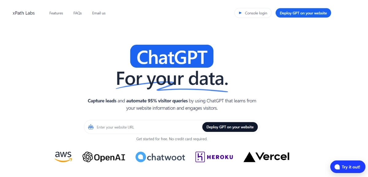 FreexPath Labs offers a tool that helps businesses set up personalized AI chatbots on their websites. These chatbots use advanced language processing to interact with visitors, gather leads, and handle common questions automatically. This can lead to increased conversions for the business.